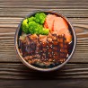 Deep fried soft shell crab inside, wrapped with avocado on the outside and topped with sweet eel sauce.