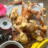 Shrimp tempura, asparagus and crab salad inside, crunchy flakes outside, topped with sweet eel sauce.
